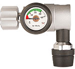 Medizinischer Kolbendruckminderer nach DIN EN ISO 10524-1 mit Inhaltsmanometer und 1x Mitteldruckabgang Steckkupplung nach DIN 13260-2.